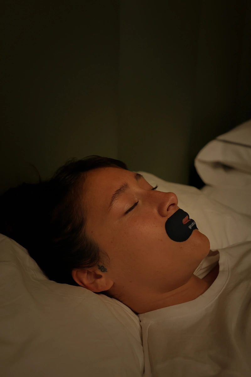 2️⃣ Aplica la cinta sobre tu boca, manteniéndola cómodamente sellada.